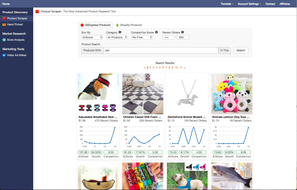 Tired of searching the millions of products on AliExpress and Shopify for potential winners? Our product scraper analyzes thousands of products each day to show you which have the highest dropshipping potential.
